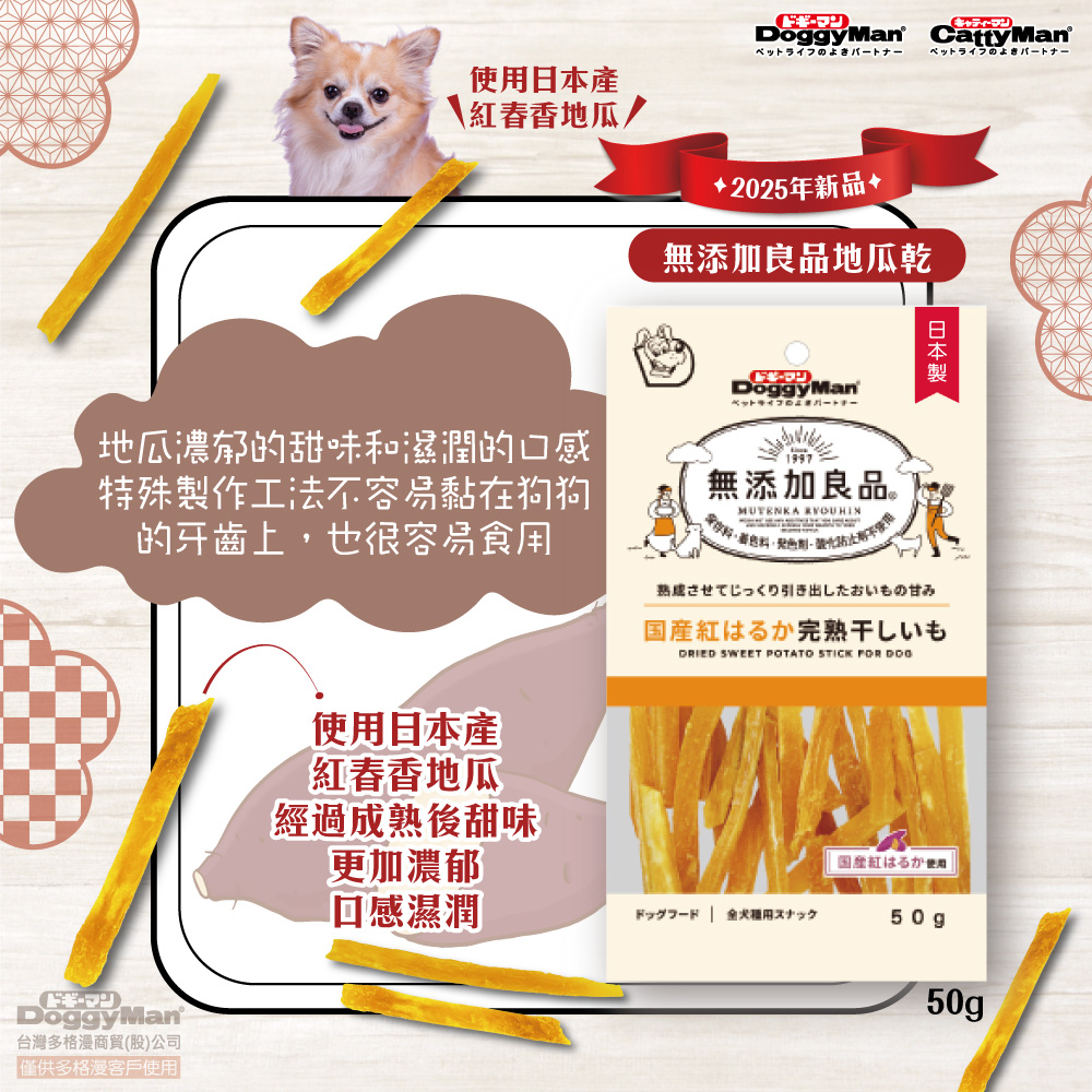 日本產紅春香,特別設計成不會黏在狗狗的牙齒上,讓牠們更容易食用。