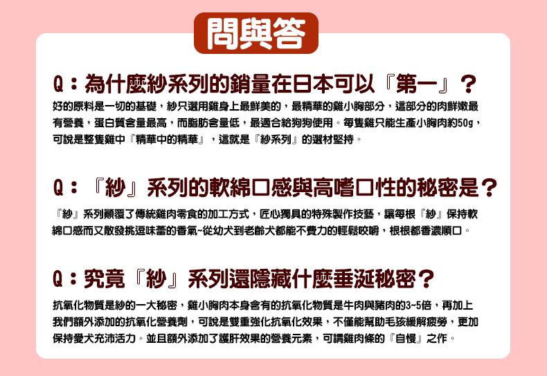 .沿用現代化生產線,保證產品加工工藝,柔軟爽滑的口感適合所有年齡段的狗狗。