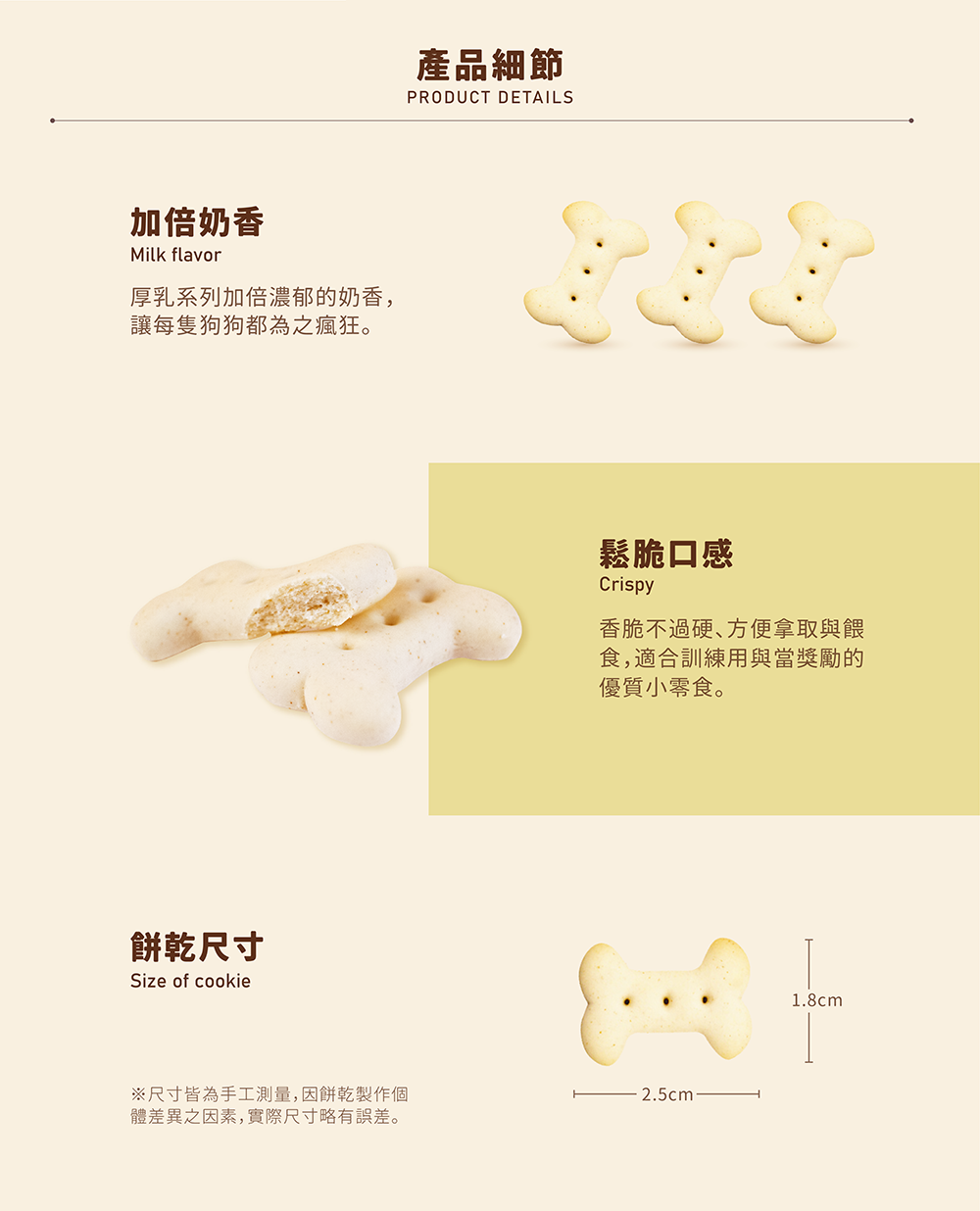 .濃郁奶香搭配香脆不過硬的口感,適合訓練或作為獎勵用的優質小零食。