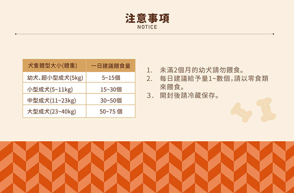 ★建議餵食量可參照包裝說明,未滿兩個月的幼犬請勿餵食。
