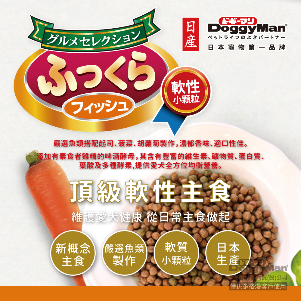 小顆粒鬆軟型,方便幼犬到老犬食用,滿足所有犬種口感,咬勁十足。