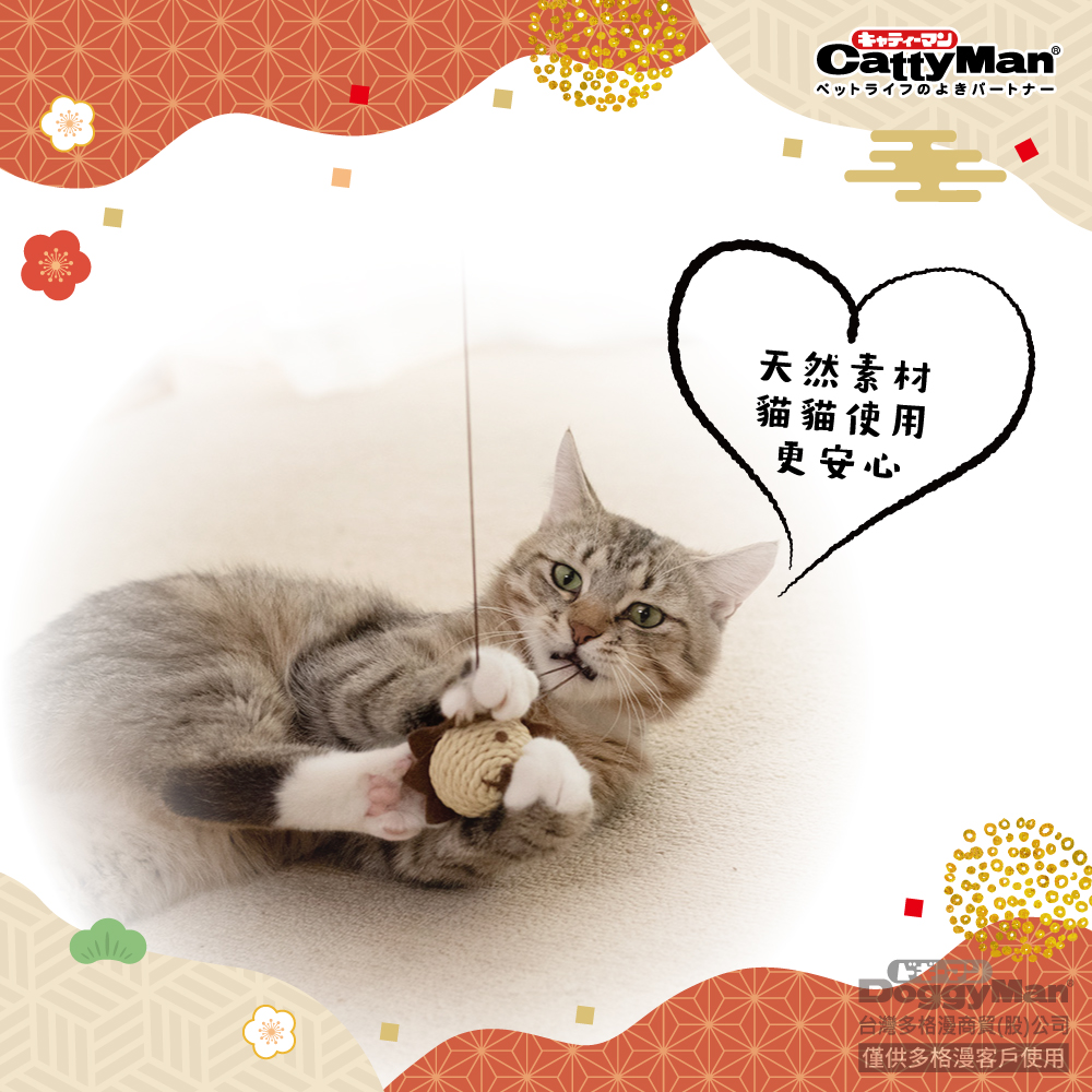 ・玩具本體使用再生紙材質,晃動後會發出貓咪喜歡的沙沙聲。