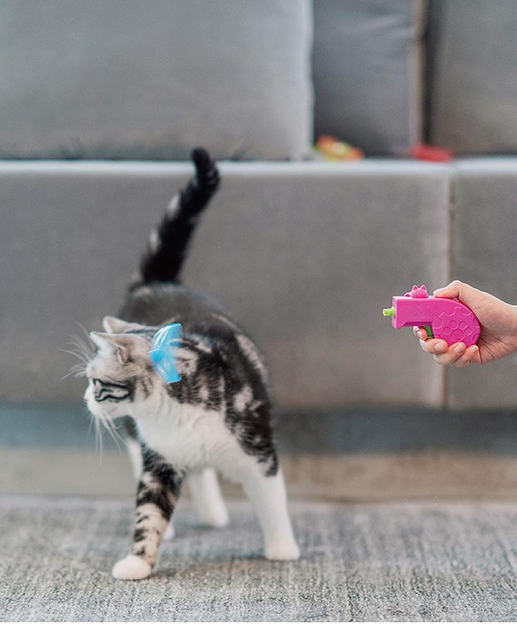 ・朝下發射(近程):有趣的不規則移動戰鬥陀螺,讓喵星人大興奮瘋狂追逐。