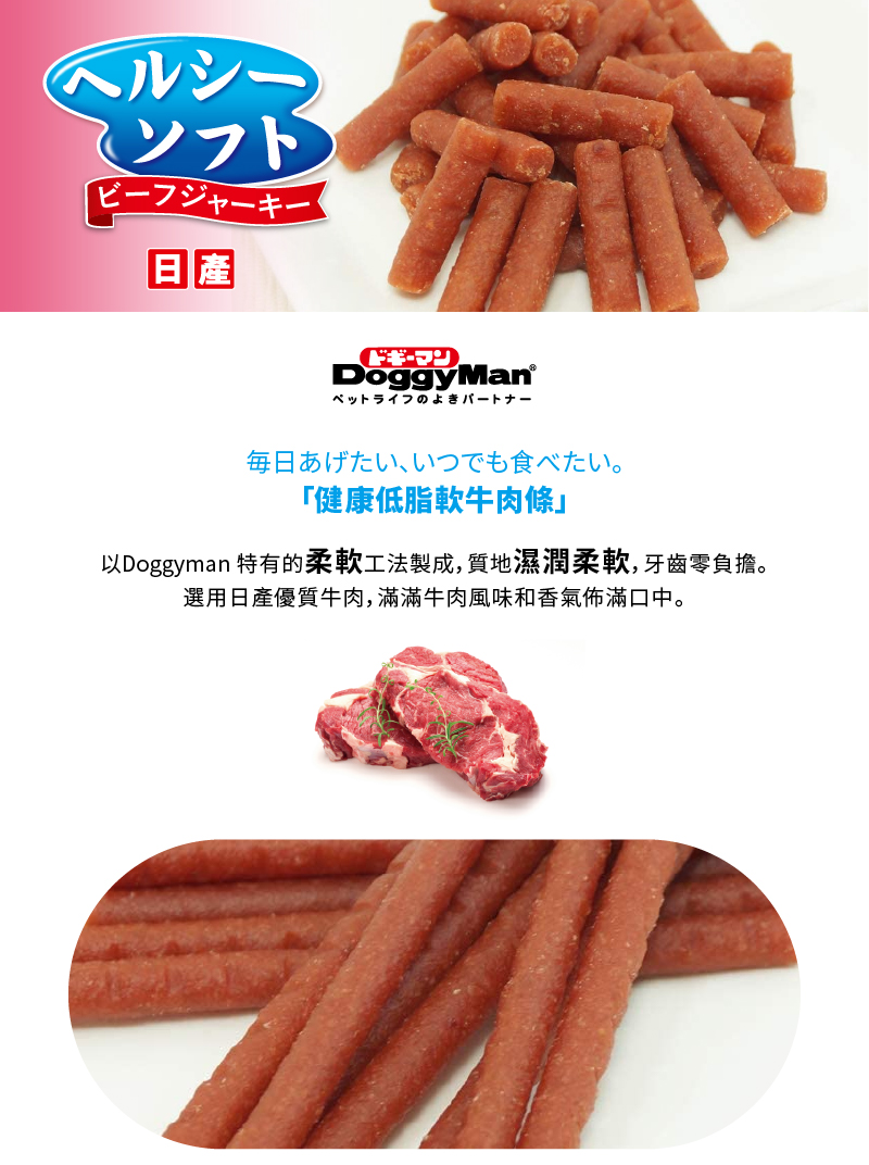專為愛犬設計軟牛肉條零食,肉條軟嫩,短切方便餵食。